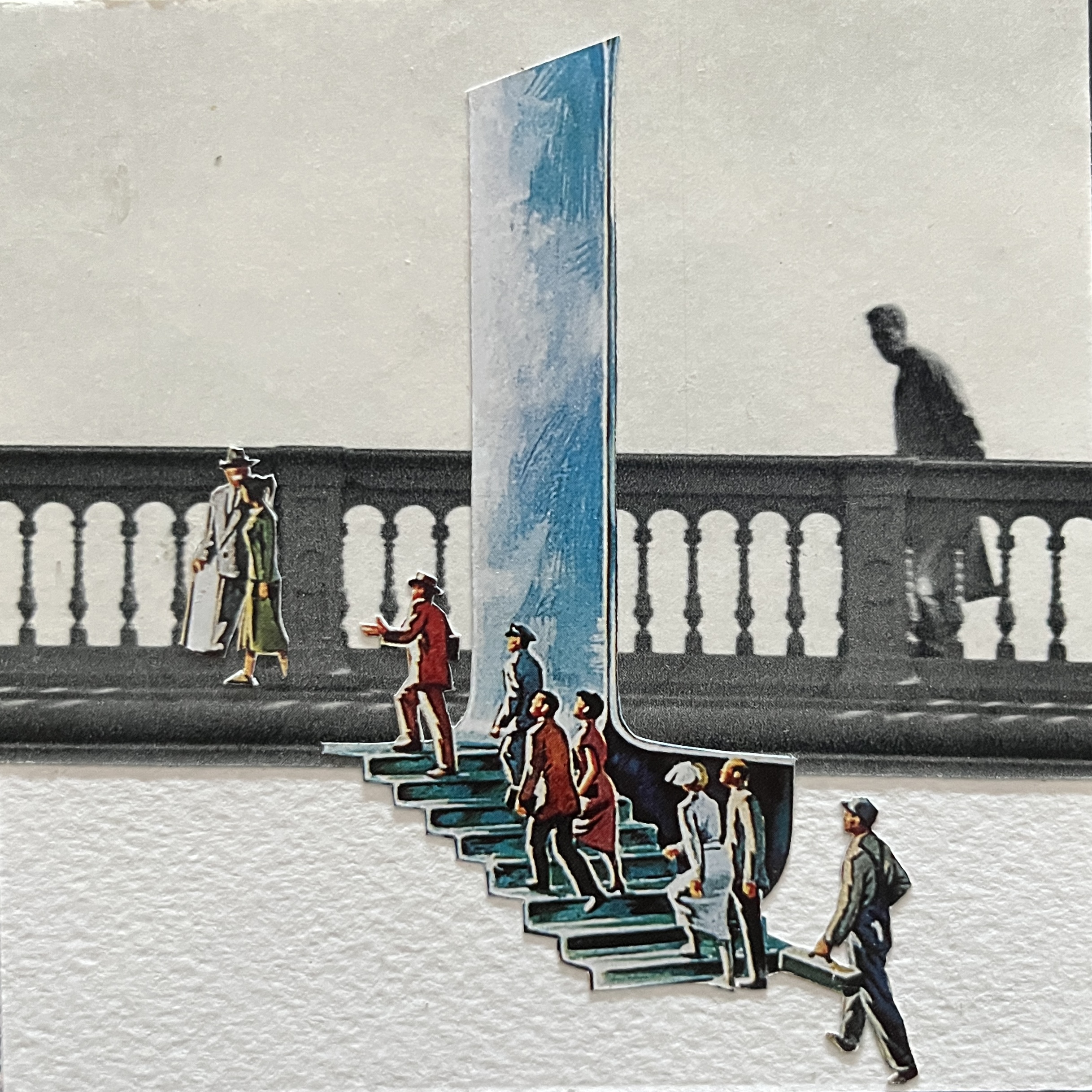 Collage bevestigd op board, 10 x 10 x 0,5 cm.
