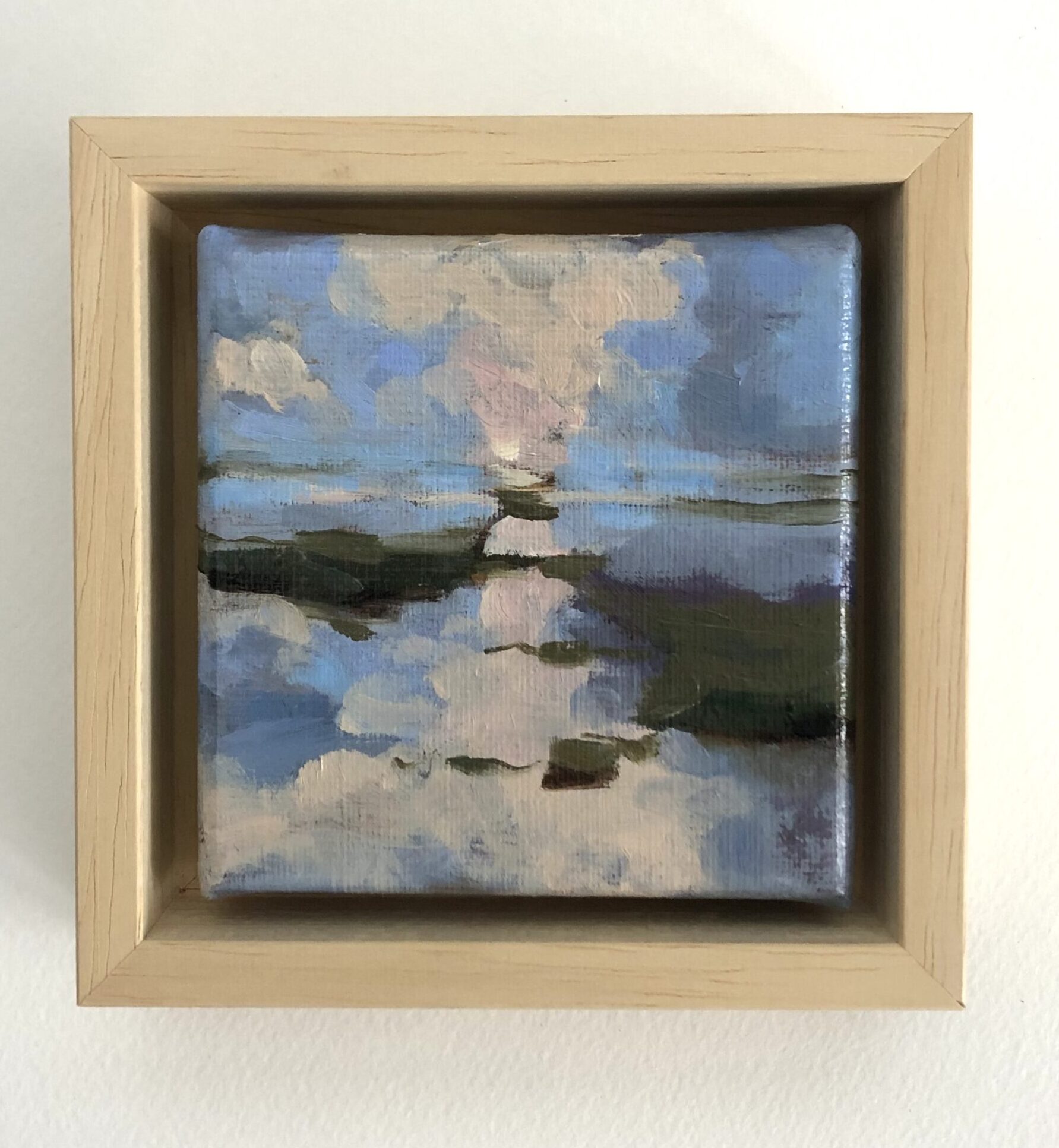 Olieverf op doek 10×10 cm, geplaatst in een baklijst.