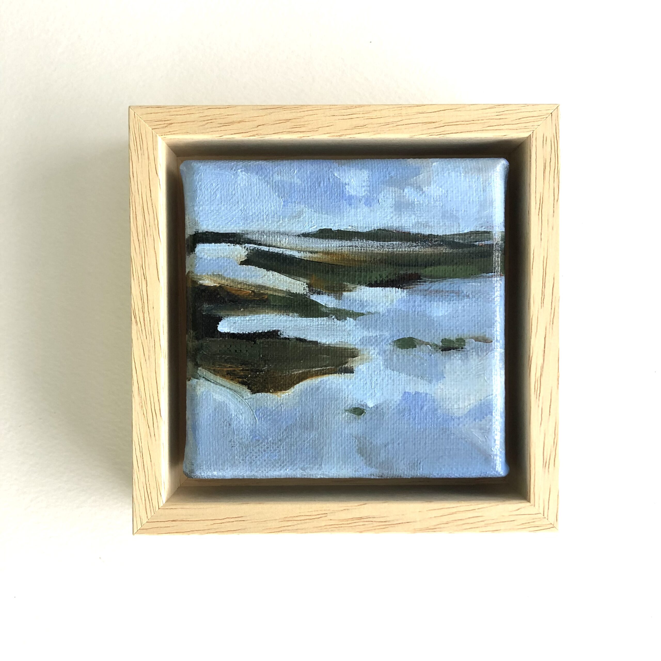 Olieverf op doek 10×10 cm, geplaatst in een baklijst.